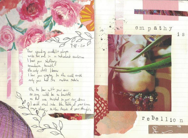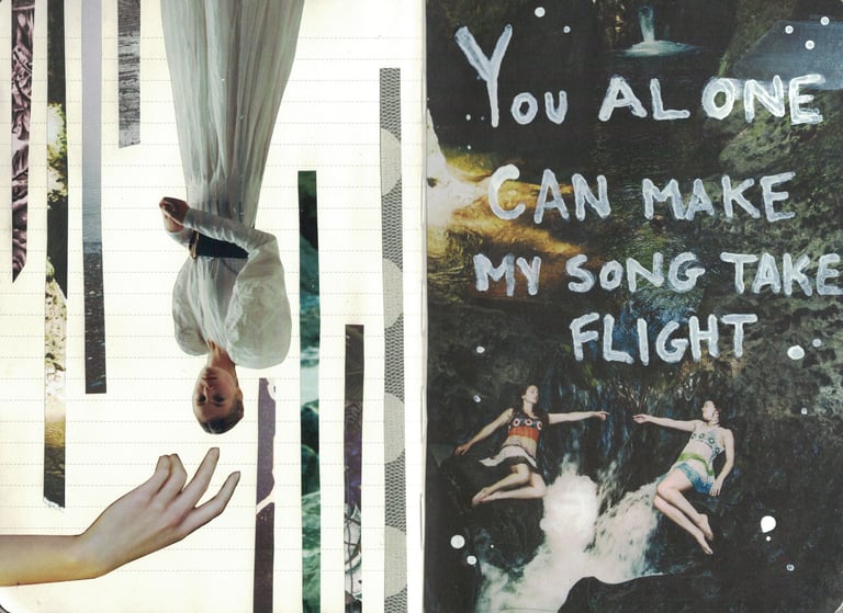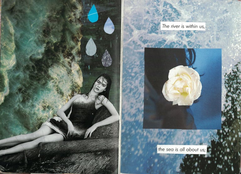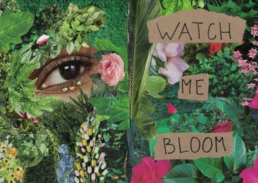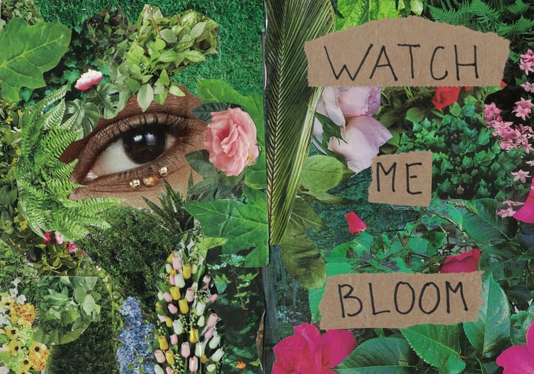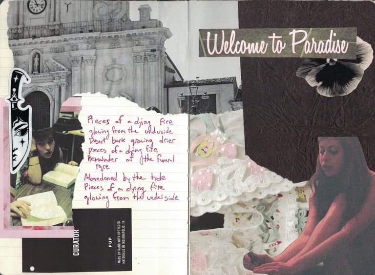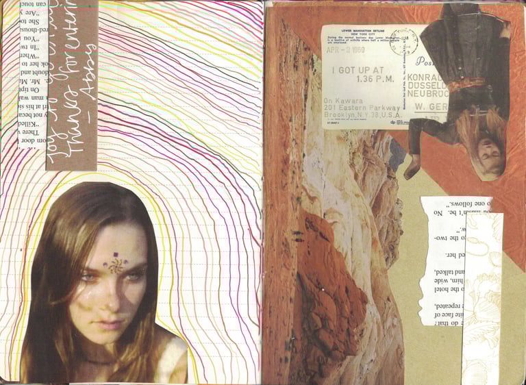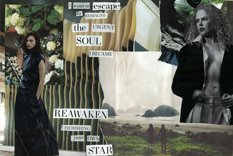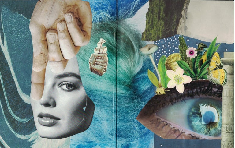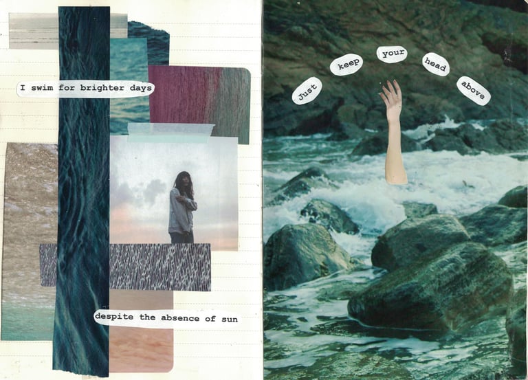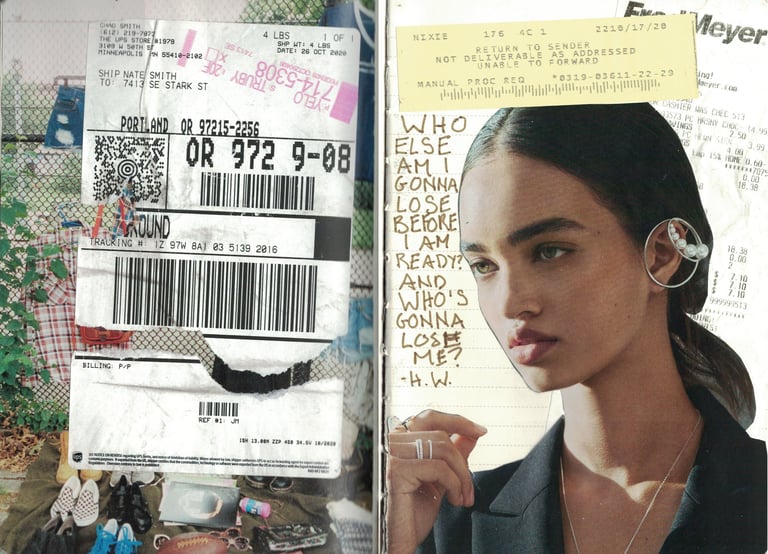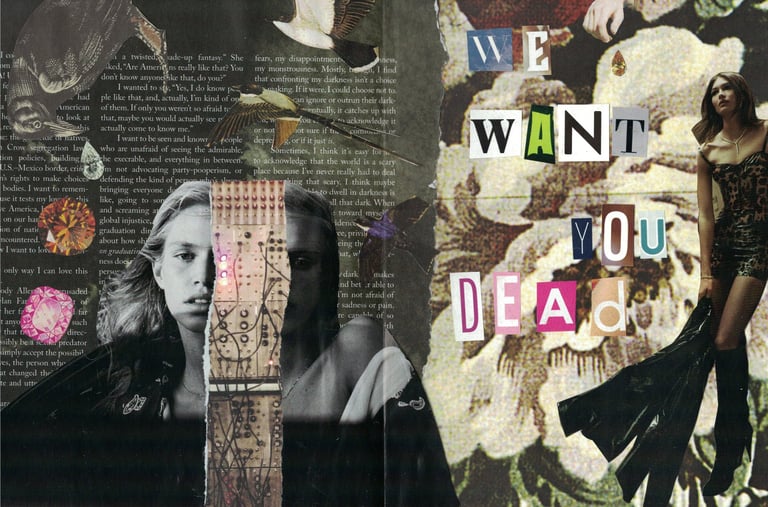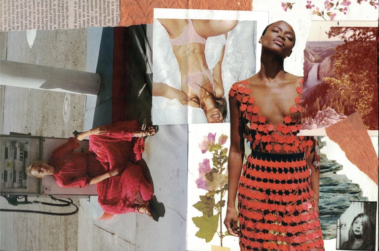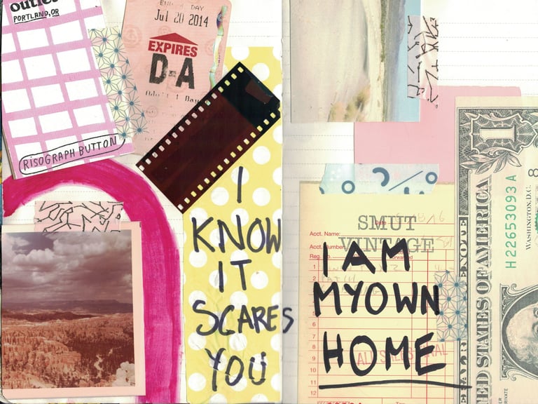 Simone explores pop culture, feminism, queerness, and coming of age through collage art. Her work often uses magazines marketed towards women as a primary resource.